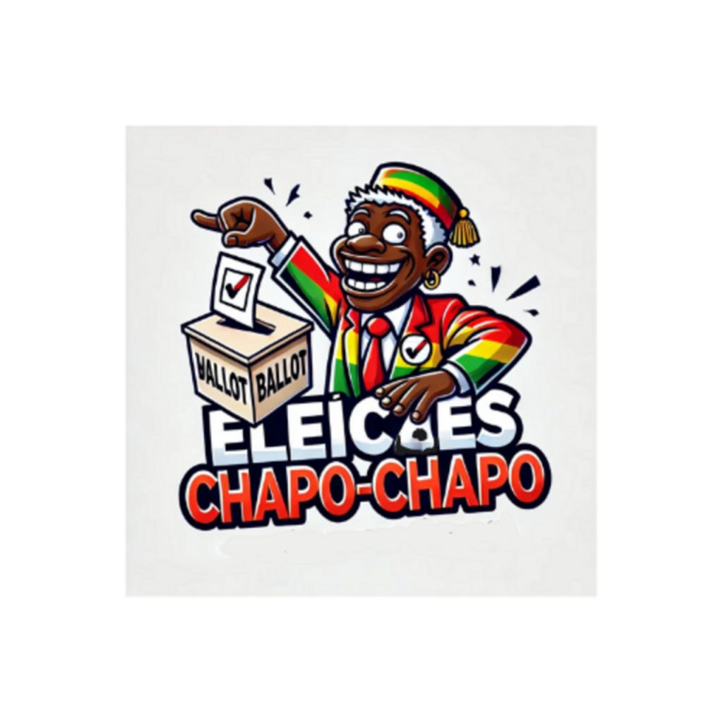 Eleições Chapo-Chapo: Uma sátira sobre eleições marcadas pela pressa e falta de transparência. Com humor e ironia, revela a futilidade de votar em sistemas corruptos, onde "Não Importa Quem Vota, Importa Quem Conta".